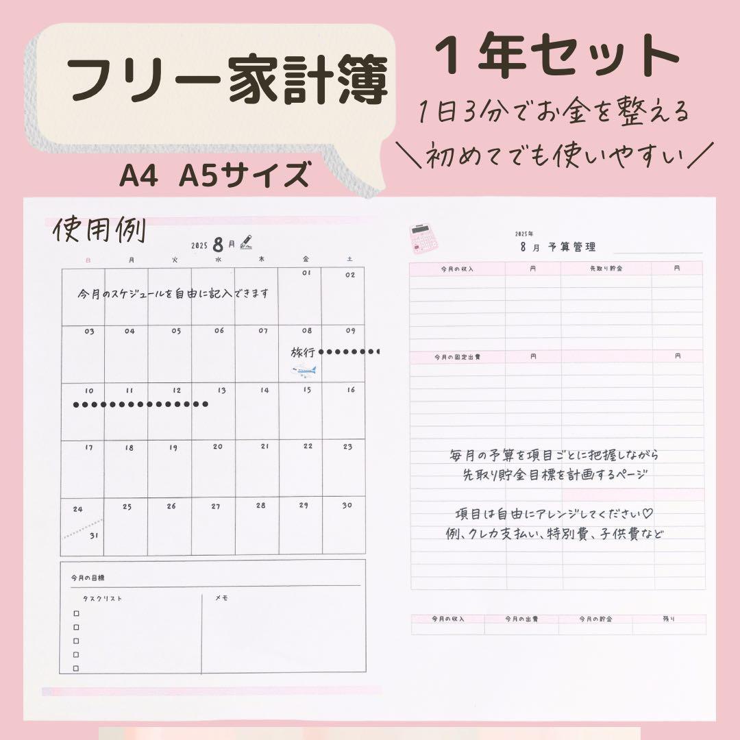 見やすい!かわいい&おしゃれな家計簿「A4・Excel・Word・PDF」印刷・手書き対応。