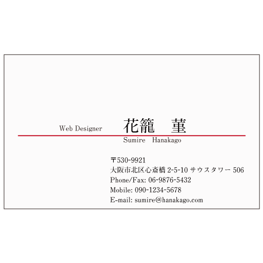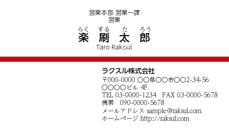 ビジネス_横_赤ライン_2723の名刺無料デザインテンプレート印刷のラクスル。