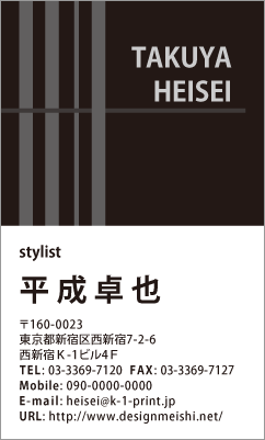 真ん中に通ったラインが印象的な、名前が映えるデザインです。名刺作成・印刷やデザインならBUSINESS名刺印刷所。