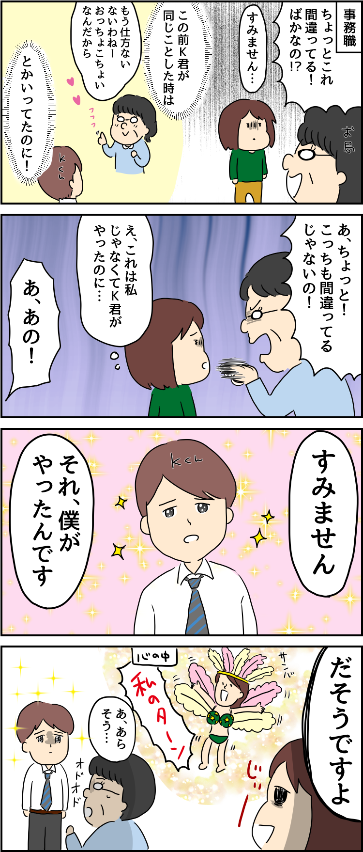 4コマ漫画by人間まお 第19話 VSえこひいき先輩世界のどこかで今日も辞めたい。