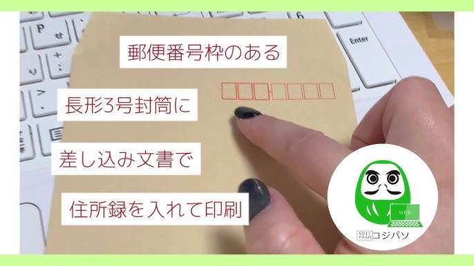 郵便番号枠のある長3封筒に差し込み文書で住所録を印刷する方法 マルアイさんのテンプレート使用コジ塾のパソコン教室コジパソ。