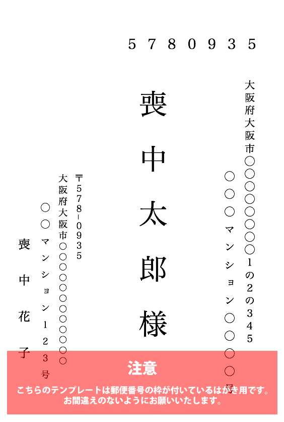 市販の枠ありはがき宛名用の喪中はがき無料テンプレートダウンロード。