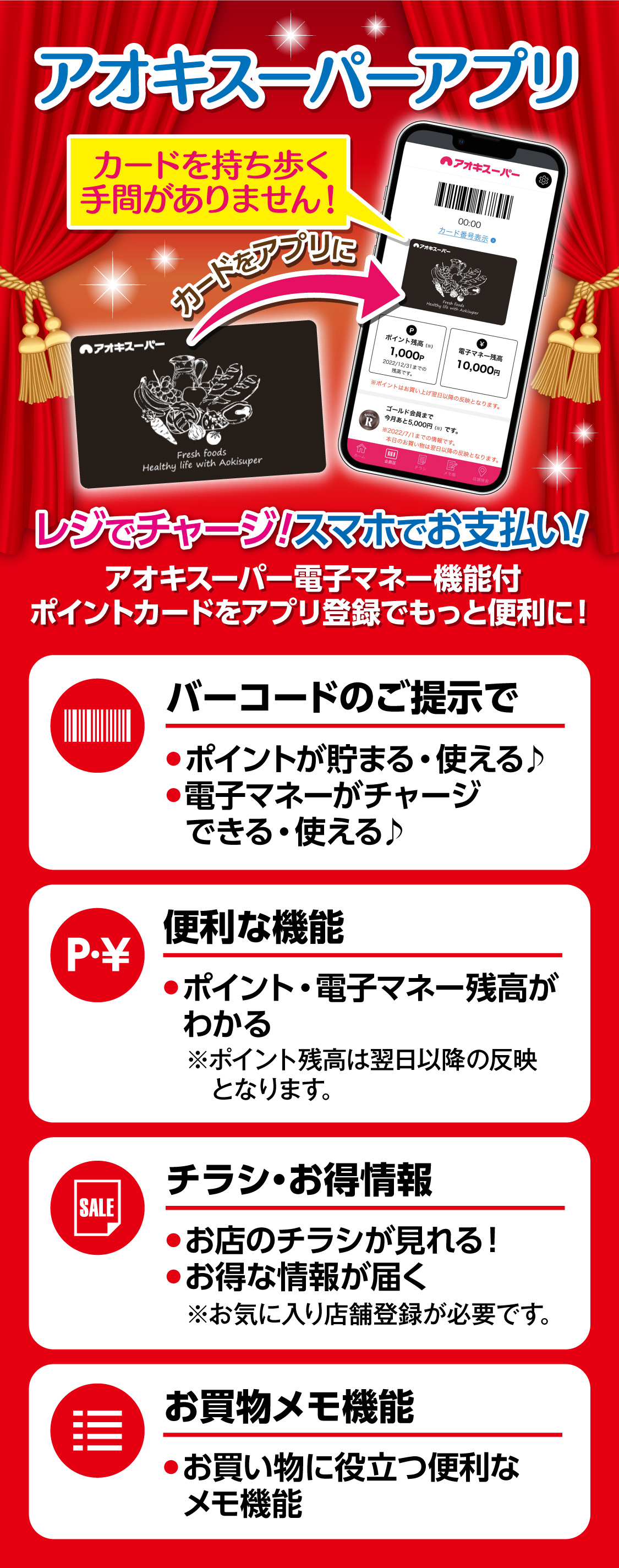 ポイントカード案内アオキスーパー地域のお客様の豊かで楽しい食生活を応援します。