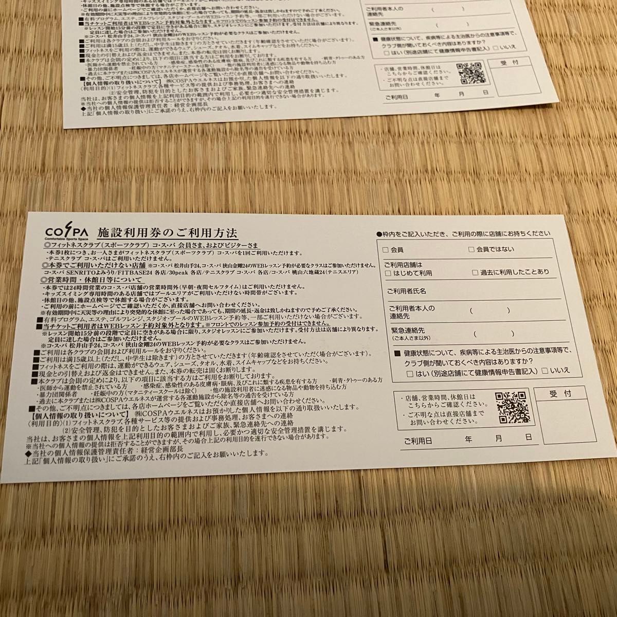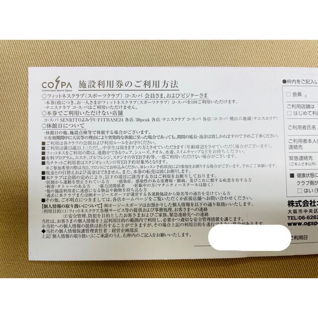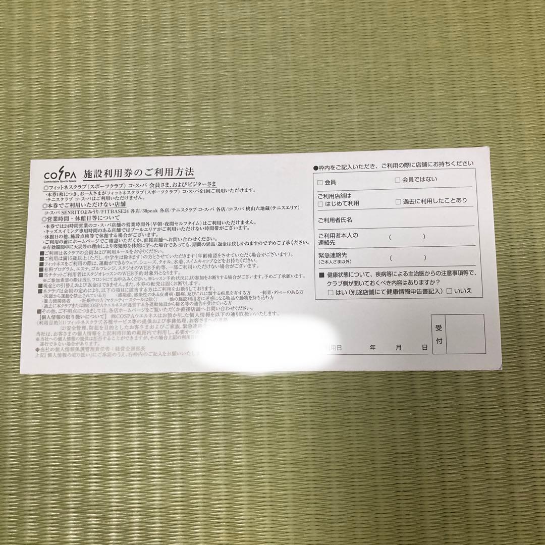 2枚 コスパ フィットネス 施設利用券 COSPA ウエルネスYahoo!フリマ 旧PayPayフリマ。