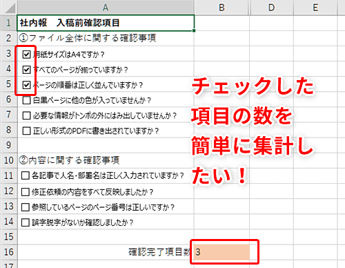 Excel チェックボックスを使ったリストを作成! チェック数の自動集計機能を実現 - いまさら聞けないExcelの使い方講座 - 窓の杜。