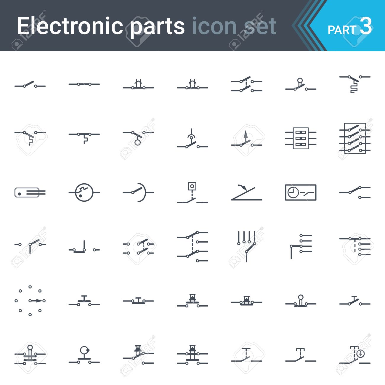 電気・電子回路図記号と要素 - スイッチ、押しボタン、スイッチ回路の完全なベクトルを設定のイラスト素材・ベクター Image 86099386。