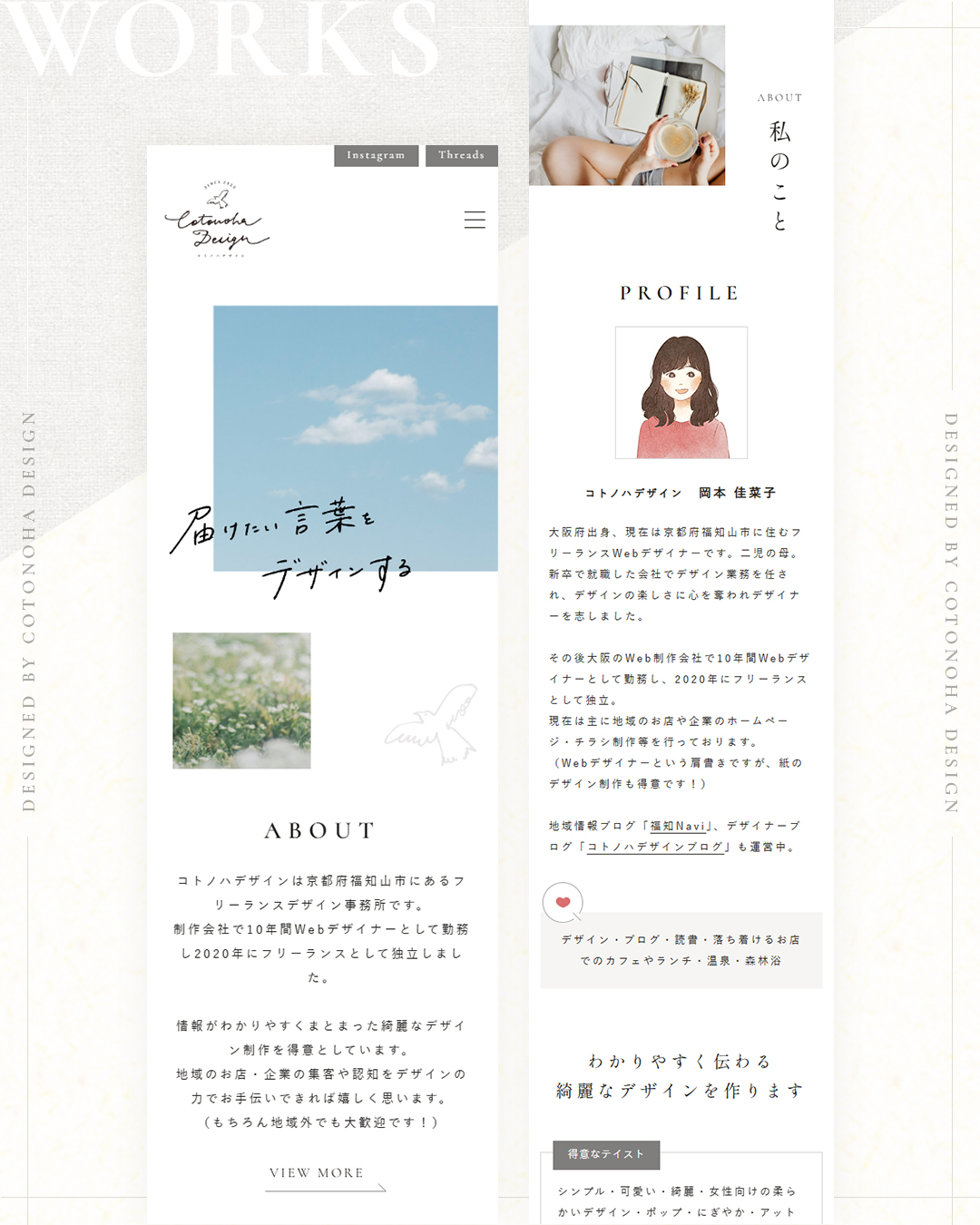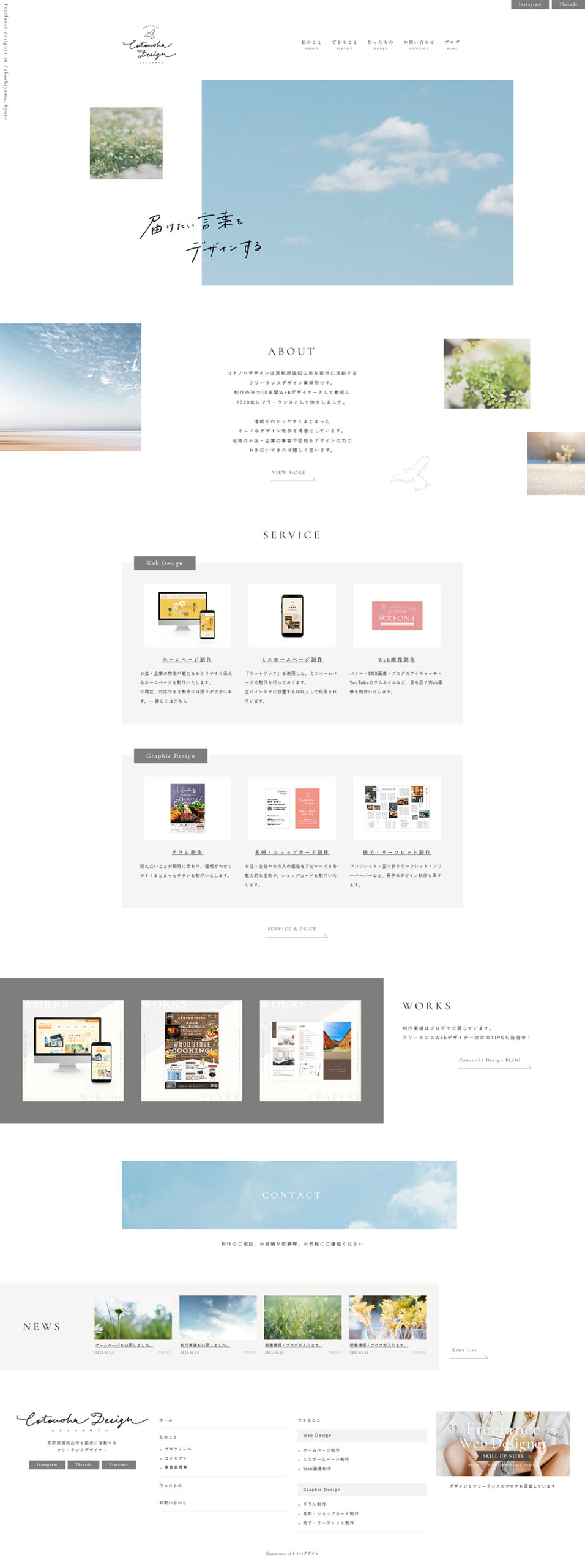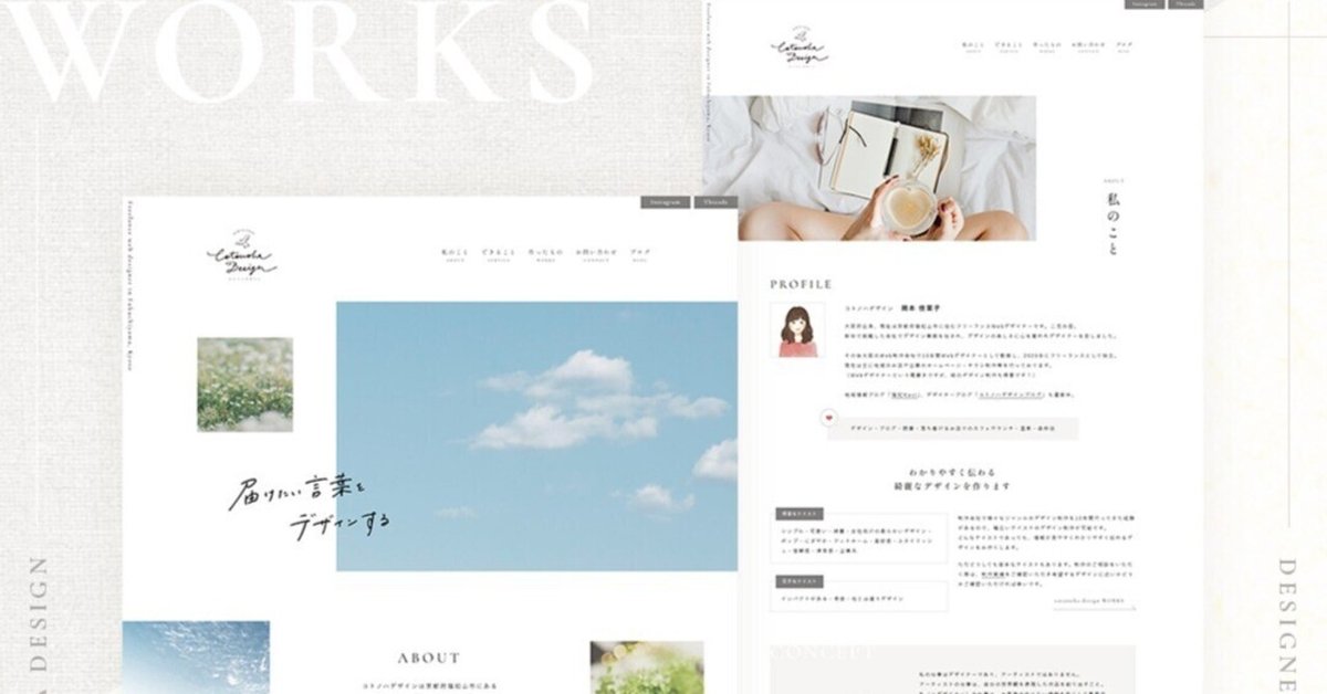 制作実績 フリーランスWebデザイナーのポートフォリオサイト*デザイン・こだわりを徹底解説 - コトノハデザインブログ。