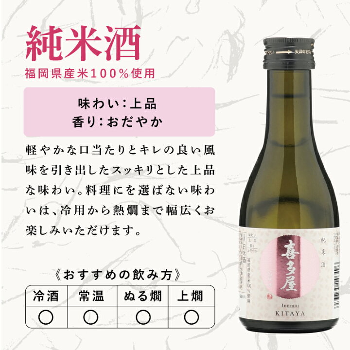 楽天市場 マラソン中P2倍ギフト対応可 株式会社 喜多屋 純米大吟醸 + 純米吟醸 + 特別純米酒 + 純米酒 15度以上16度未満 180ml瓶 日本酒飲みくらべ ちょい飲みセット セット 日本酒 お酒 プレゼント 飲み比べ 内祝い 誕生日 男性 女性 お歳暮 ハロウィン : 酒。