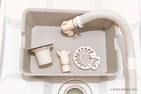 洗面所が臭うのは!もしかして洗濯機の防水パンが原因かも?排水トラップの掃除の仕方とナノバブルできれいに。