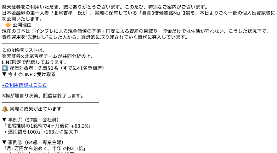 2025 08 09 7:00 楽天証券を騙る詐欺メールに関する注意喚起 - 情報基盤センターからのお知らせ。