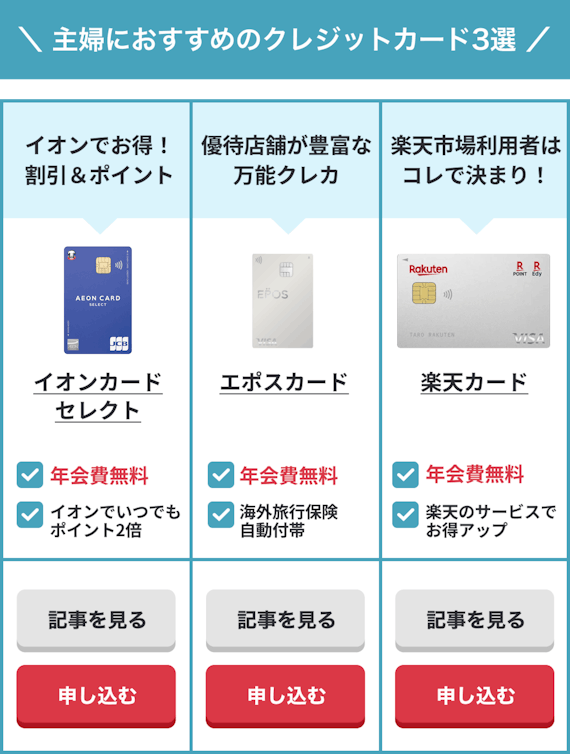 おすすめ5選 専業主婦におすすめのクレジットカード主婦が選ぶ実力派カード - おすすめクレジットカード比較 -クレジットカード+おすすめクレカランキング・比較情報メディア。