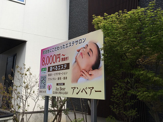 エステサロンのオープン告知 東京都立川市-調布の看板屋さん デザインから施工までワンストップで。