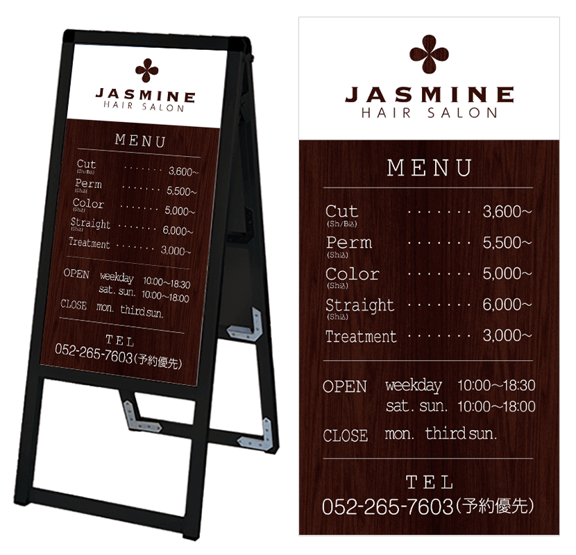 サロン開業・オープニング準備エステサロンスタンド看板デザイン株 JP-mix。