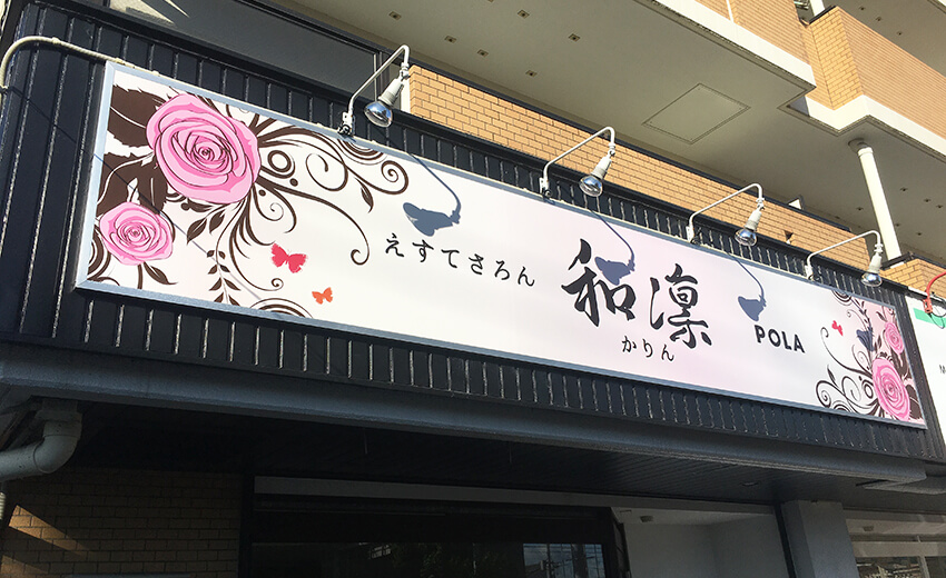 POLAエステサロン和凛 店舗看板名古屋で店舗や事務所の看板デザイン・看板製作は看板クリエイトにご相談ください。