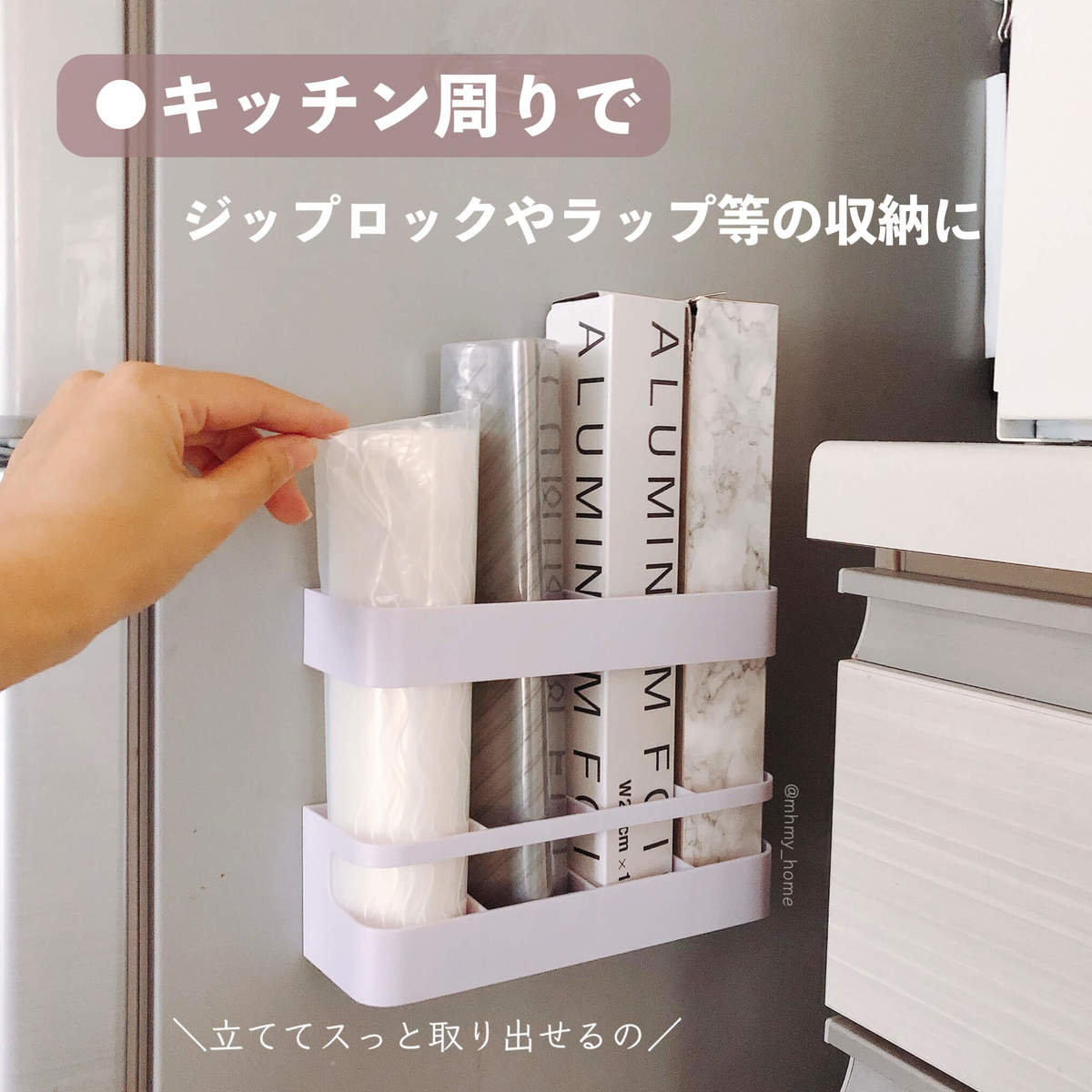 ダイソーのマグネット傘立て!, 再入荷していたので、もう一度紹介✨, 私の家ではジップロックの収納に使ってるよー!,100均ダイソー便利グッズ収納アイデア100均収納。