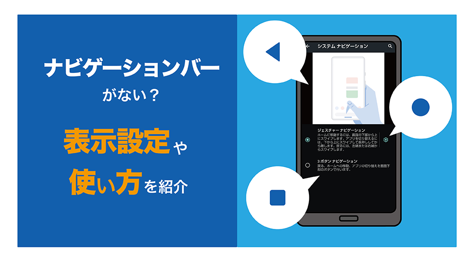 基本設定 androidスマホの画面下に◀ ● ■のボタンを設定する3ボタン ナビゲーションバ。