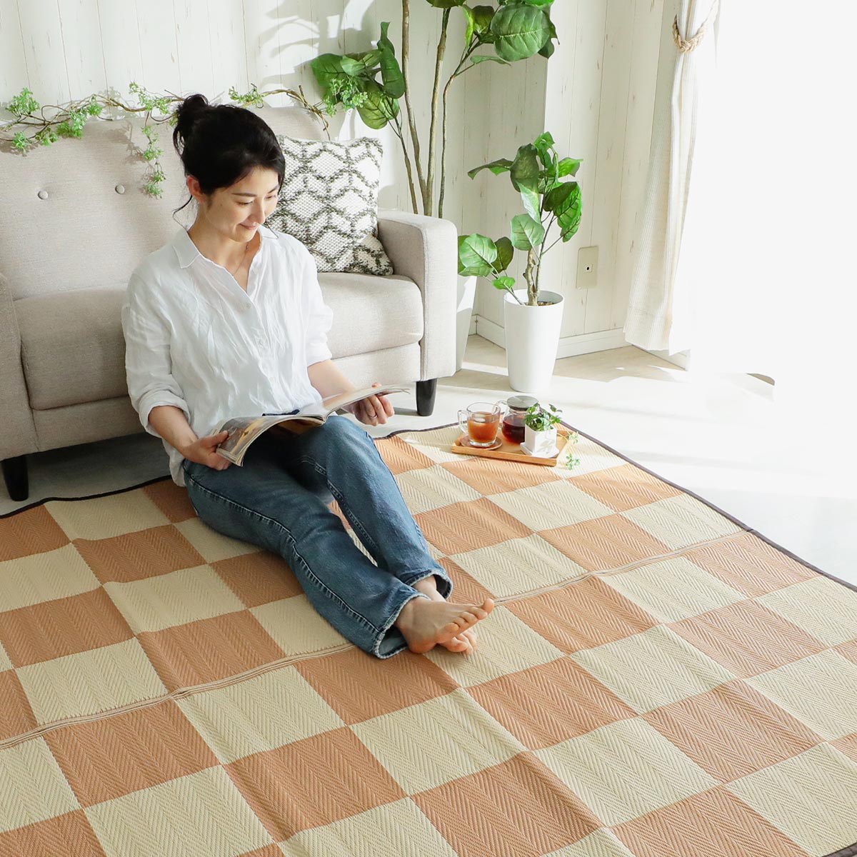 洗える!ビニール素材のい草風モダン柄カーペット 『尾瀬 おぜ』- ラグ・カーペット通販 びっくりカーペット。