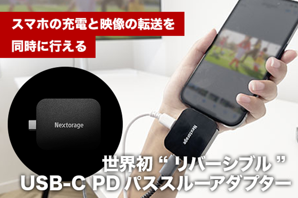 スマホを充電しながら4K動画をポータブルSSDへ録画可能 デバイスの充電と映像・画像の転送を同時に行える 世界初 “リバーシブル” USB-CPDパススルーアダプター「PDPアダプター™」GREENFUNDING。