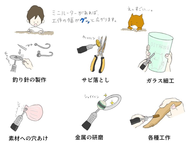 2024年版 初心者ミニルーター、ハンドグラインダーのおすすめ、選び方、使い方、修理初心者のためのDIY工具、用具の紹介。