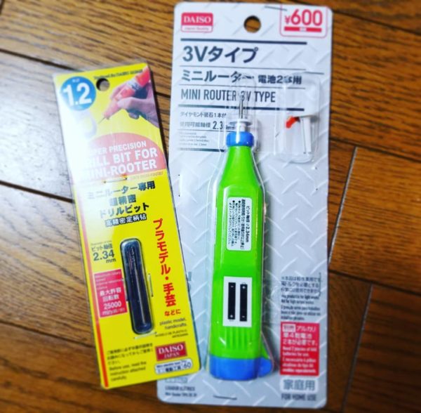 ダイソーのミニルーター3Vタイプ 700円の電動ドリル使い勝手は?プラモやガラスの加工に。