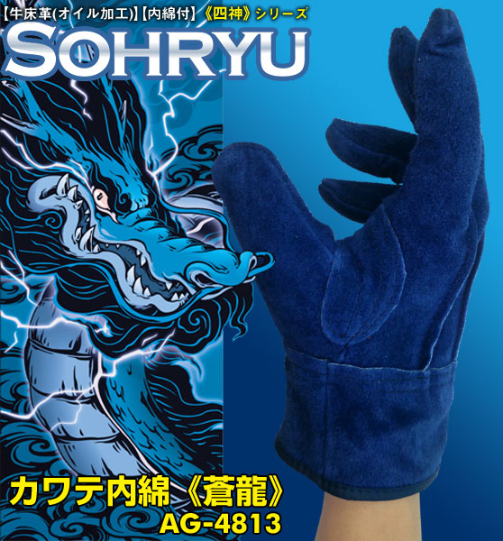 エースグローブ 小野商事作業用革手袋 「カワテ内綿 四神モデルSOHRYU -蒼龍- 」 AG4813 1ダース12双入通販のジャンブレ。