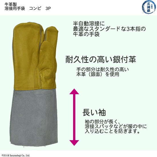 牛革 溶接用 手袋革手袋コンビ3P 3本指アーク ・ CO2 溶接 用革手袋工具の三河屋 本店。