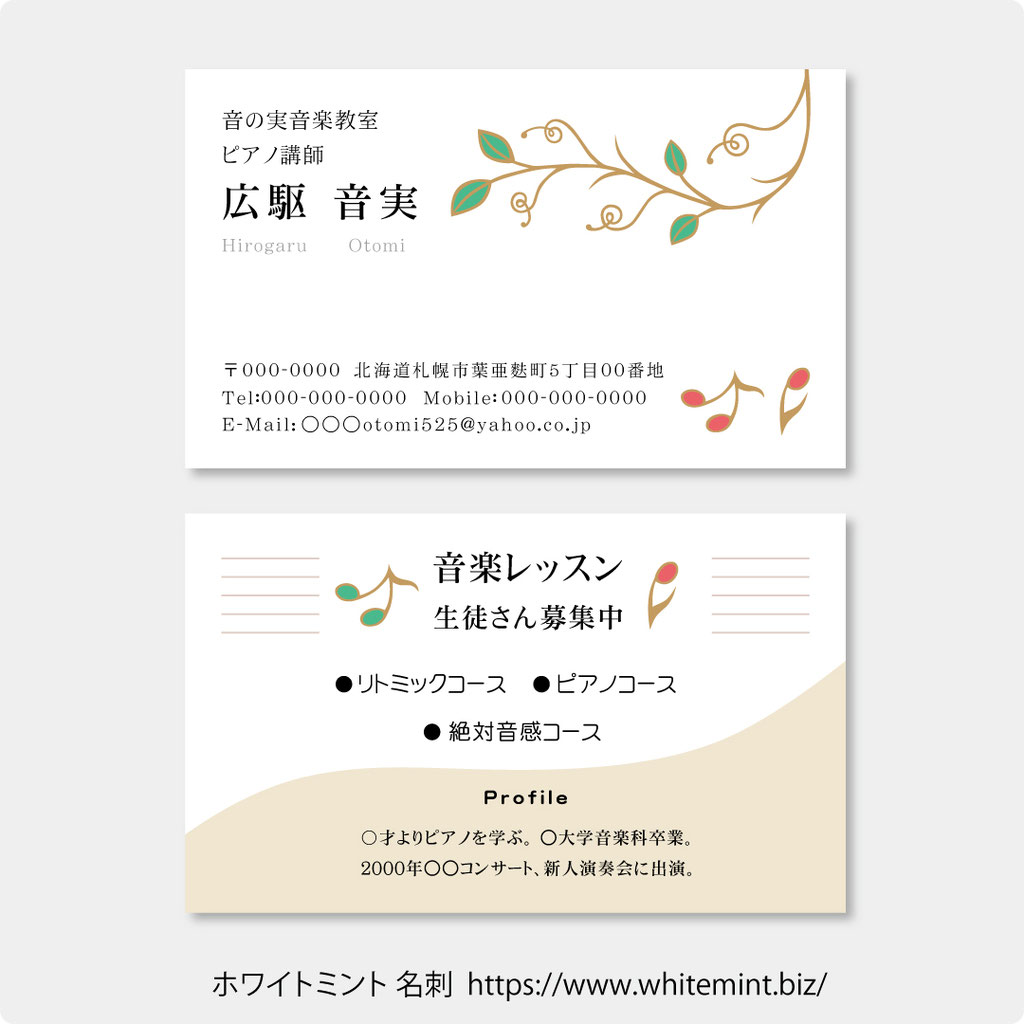 音楽教室の名刺印刷・作成無料デザインテンプレート - ネット印刷グラフィック。