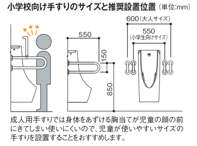小便器に手すりをつけて連立する場合の最小の取り付け間隔を教えてくださ。