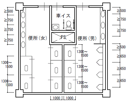 トイレ設計・基本寸法・便器数の算定ARCHI SIMPLE。