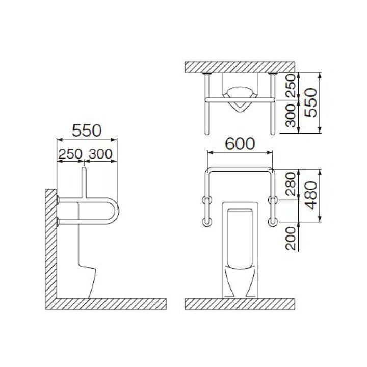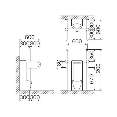 バリアフリー手摺 ストール小便器手摺 SK-200S神栄ホームクリエイト物干金物、タラップ、室名札、郵便受箱、ドアハンドル等の建築金物メーカ。
