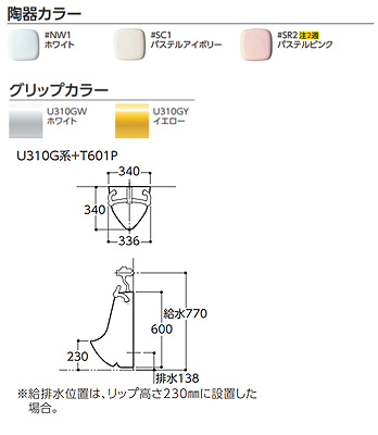 U310G*+T601P-setTOTO幼児用小便器 壁:排水芯138mmフラッシュバルブ。