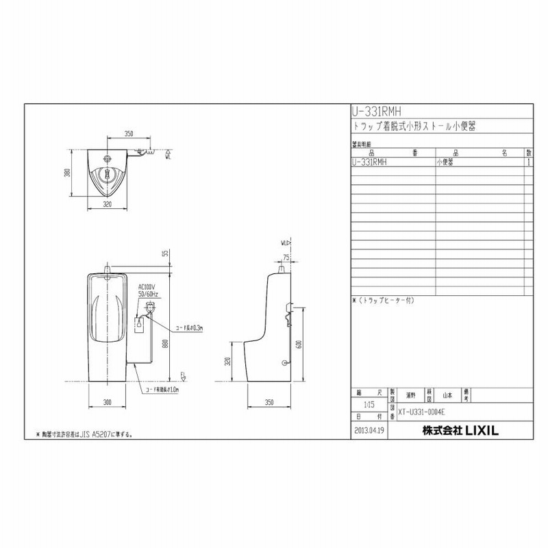 U-331RM BN8+UF-3JT-setLIXIL○小便器セット 小形床置。