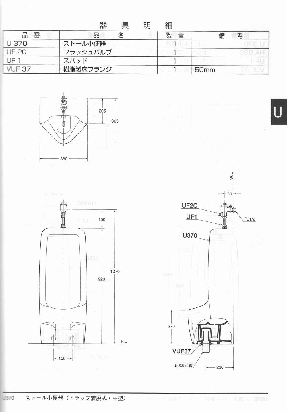 非水洗便器 朝顔型 小便器 U-15P-K。