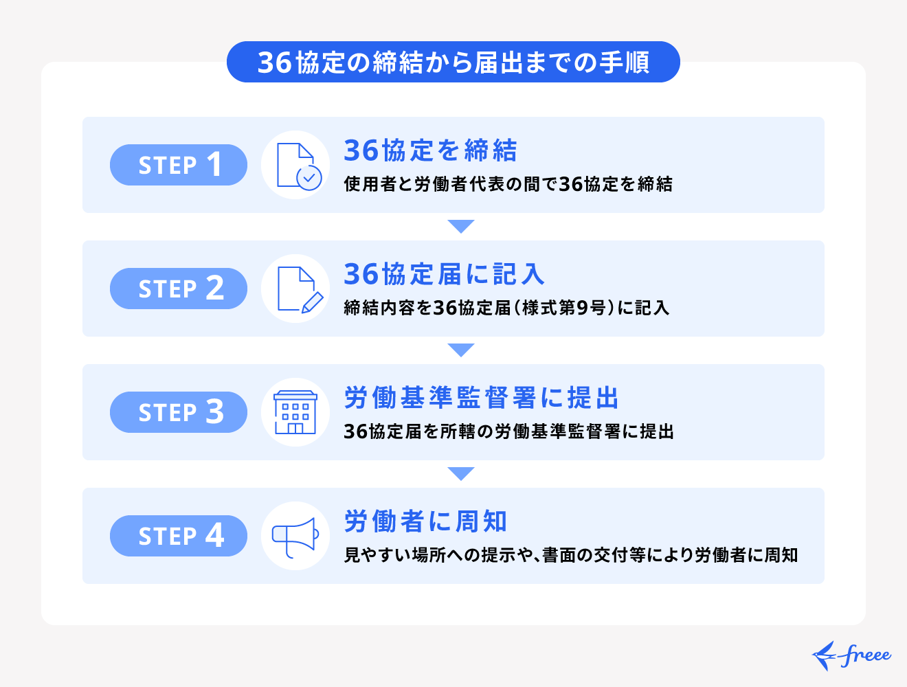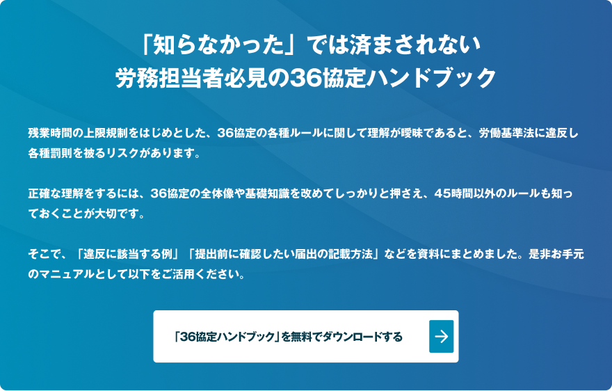 36協定とは?締結後の残業時間や違反への罰則、締結の流れなどを解説経営者から担当者にまで役立つバックオフィス基礎知識クラウド会計ソフトfreee。