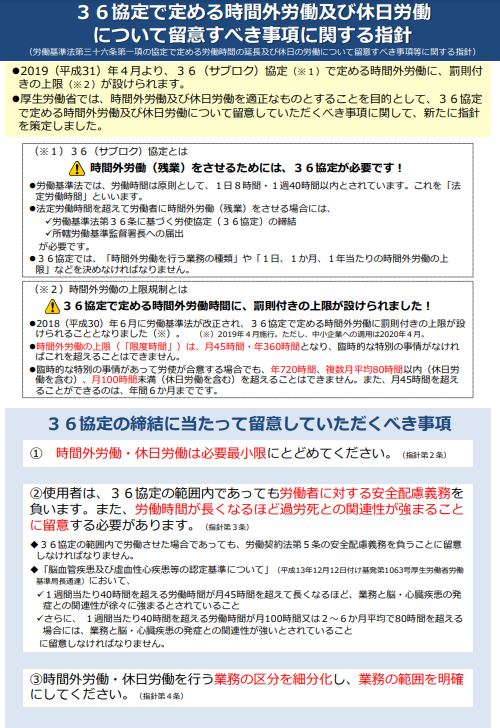 働き方改革 「36協定」締結前に要チェック!「時間外労働の上限規制」が中小企業でも義務化、罰則もあり - 働き方テラス。