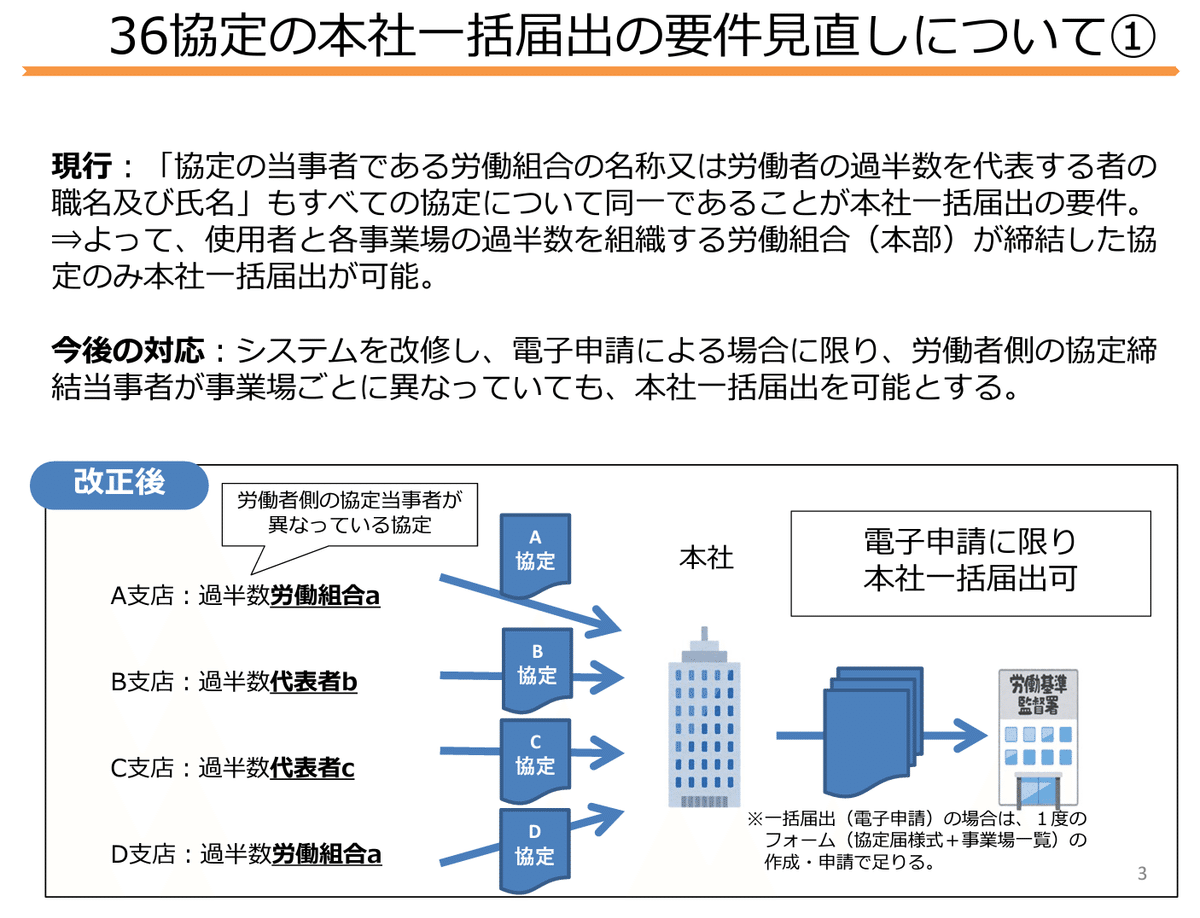 実務家向け 36協定届一括届け簡素化へ。