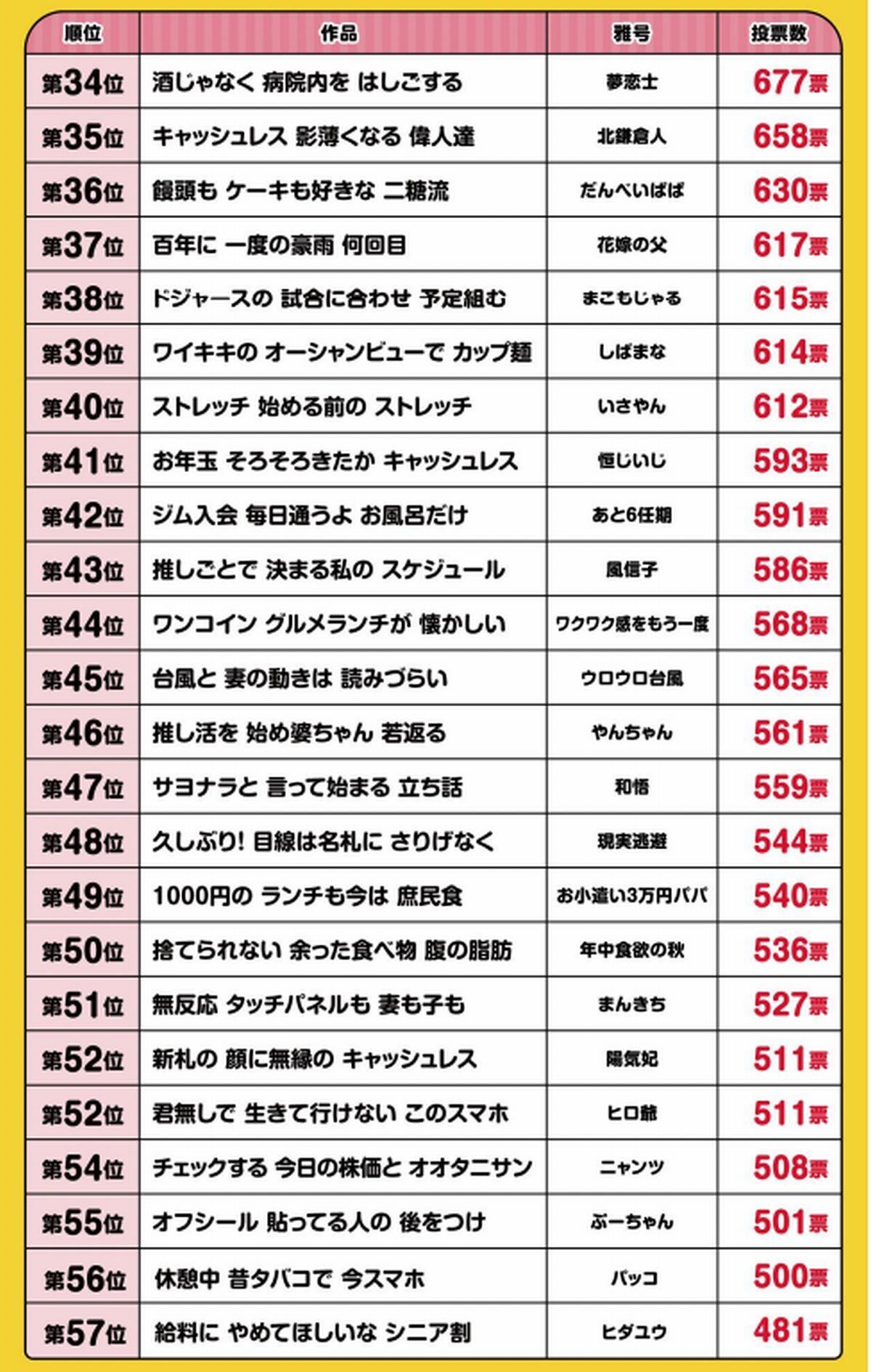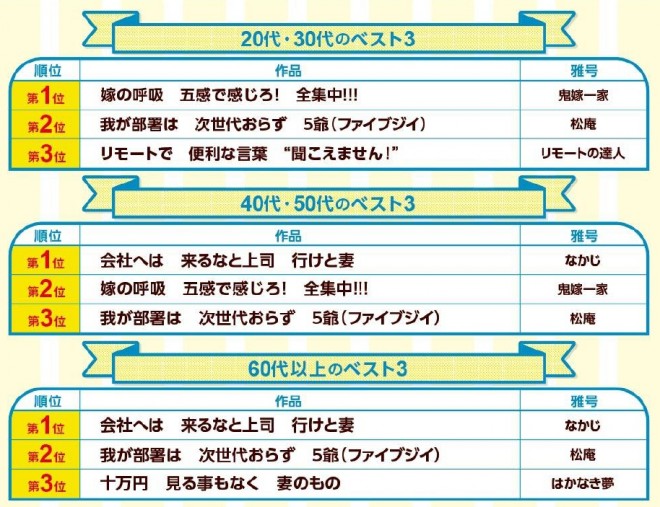 第34回「サラリーマン川柳」優秀100句が決定、一挙紹介 - ライブドアニュース。