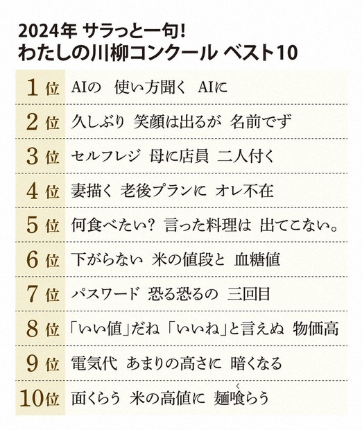 2024年サラリーマン川柳優秀100句決定、一挙紹介 - 物価高に米不足が入選TECH+ テックプラス。