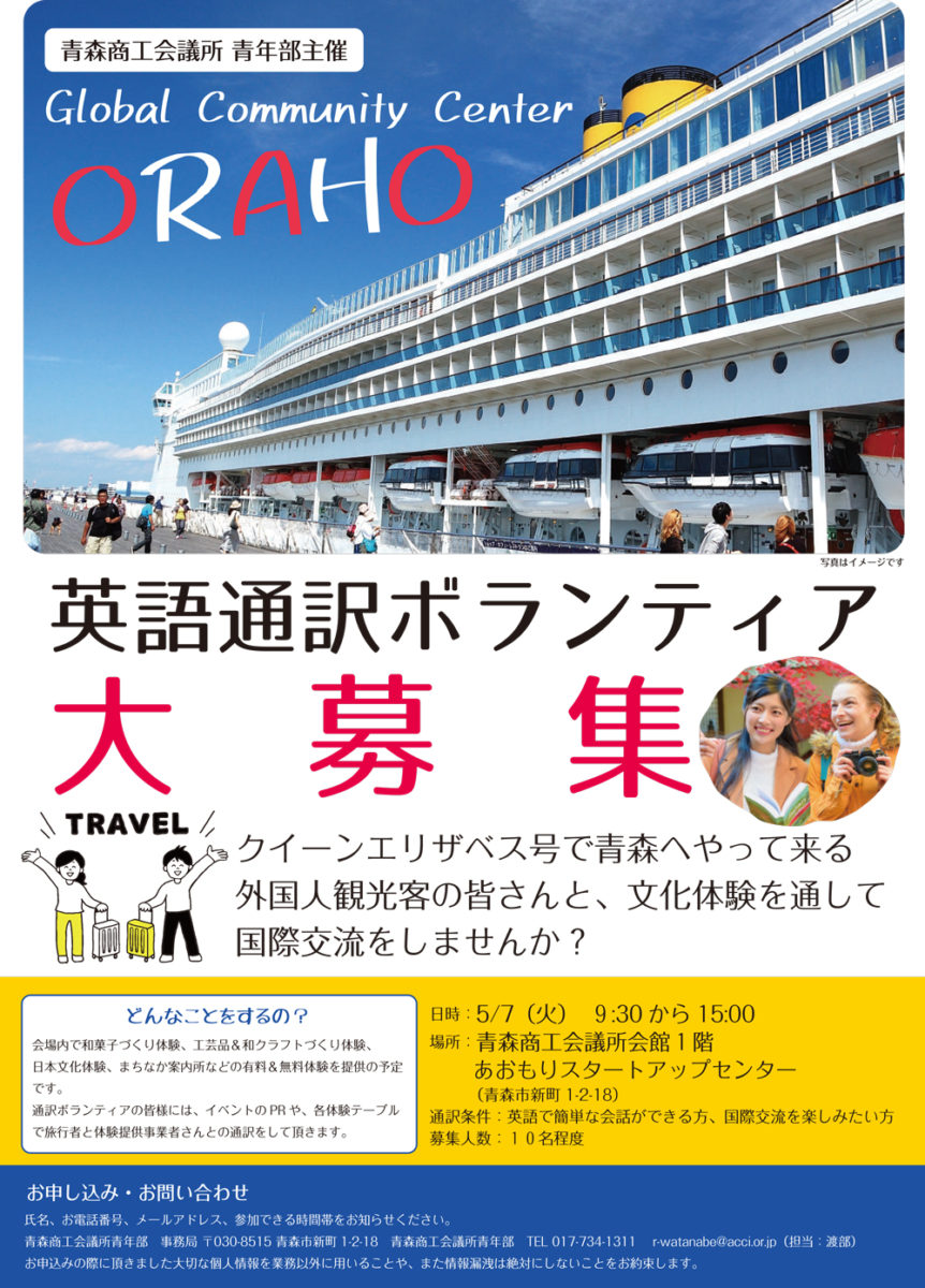 Global Community Center ORAHO 英語通訳ボランティア大募集 - 青森商工会議所青年部。