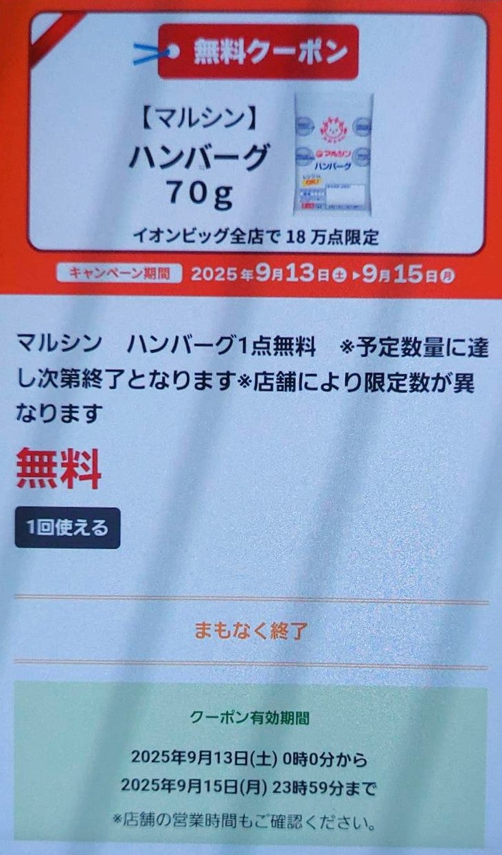 ザ・ビッグ ハンバーグ無料クーポン 15日まで!ジハンピキャンペーンは今日まで!パート主婦*なつの節約ブログ*低収入でも心豊かな暮らし。
