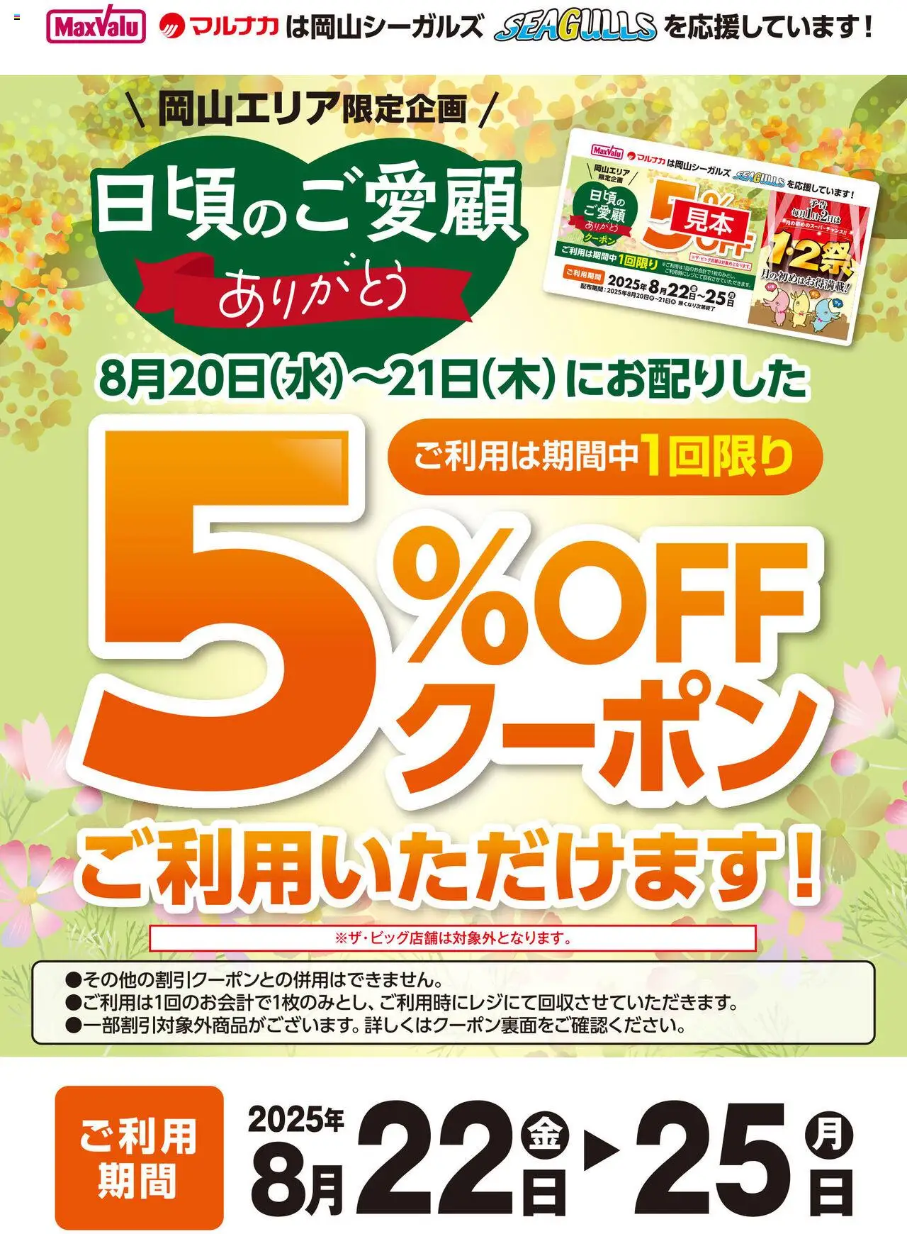 5%OFFクーポンご利用いただけます!2025 08 22 ~ 2025 08 25。