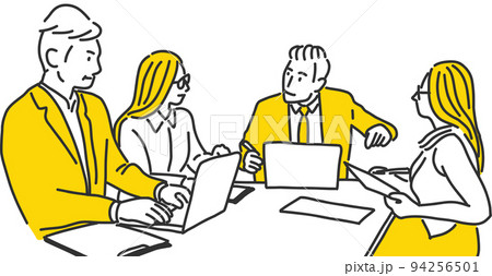 社内会議中の会社員4人のイラストのイラスト素材94256501- PIXTA。