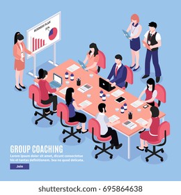 青の背景に3Dアイソメベクターイラストで会議中にブレーンストームの話し合いを行うオフィスワーカー」のベクター画像素材 ロイヤリティフリー695864638Shutterstock。