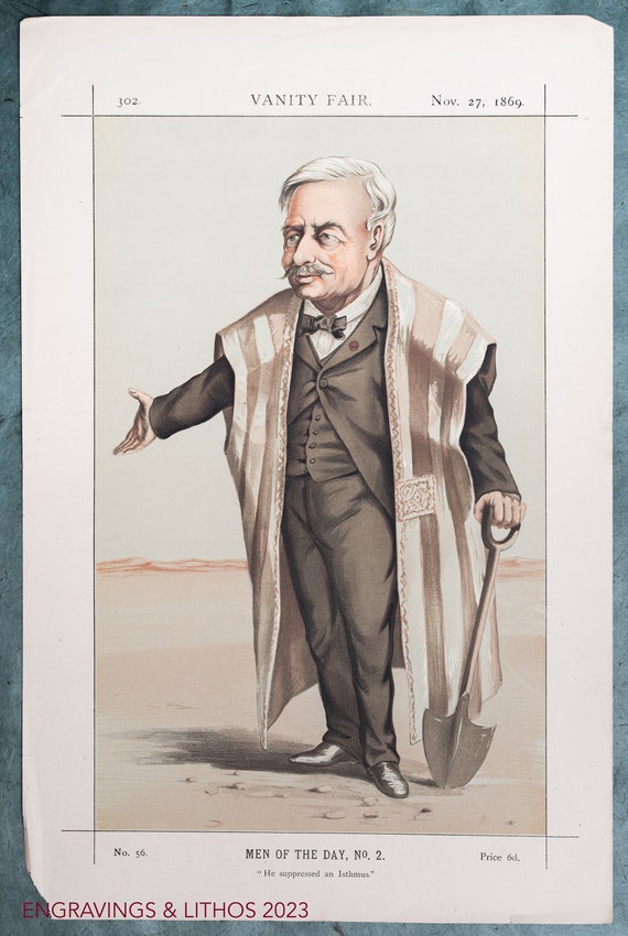 1869年 - スエズ運河の土木技師、フェルディナン・ド・レセップス子爵 - 『ヴァニティ・フェア』のオリジナル版画風刺画 - Etsy 日本。