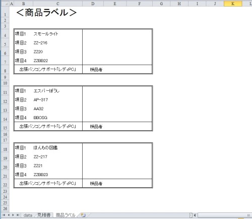 1ページに2件以上のデータを印刷するシートを作成する ラベル印刷設定エクセルと連携して、業務アプリケーションを提供します。