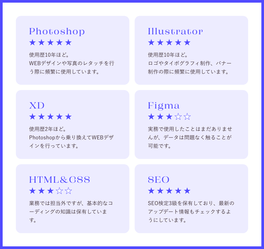 入門 はじめて作るポートフォリオの「自己紹介」 書き方とデザイン・レイアウトの参考例をご紹介- めがねんちblog。