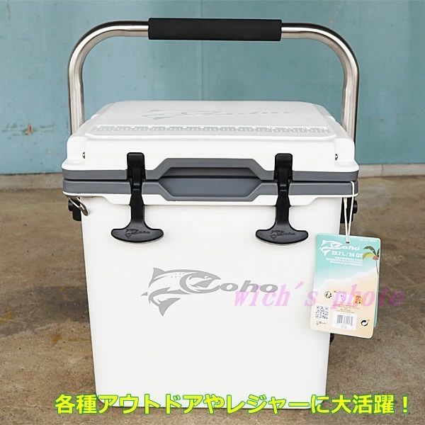 コーホー クーラーボックス 22L 長さ48.6 奥行39.3 高さ43.7 インジェクションモールド 保冷力 大容量 ホワイト 釣り キャンピングアウトドア ボックス 24Quart 持ち手付き並行輸入品。