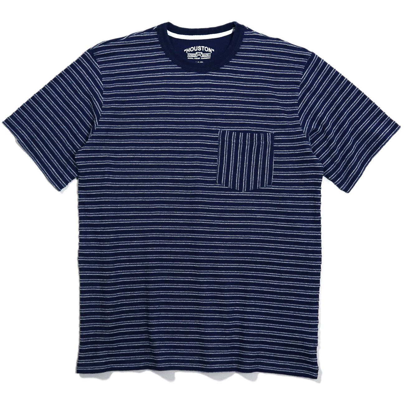 ジャガード織りでボーダー柄を表現した大人の『インディゴポロシャツ』。HOUSTON-BOOK。