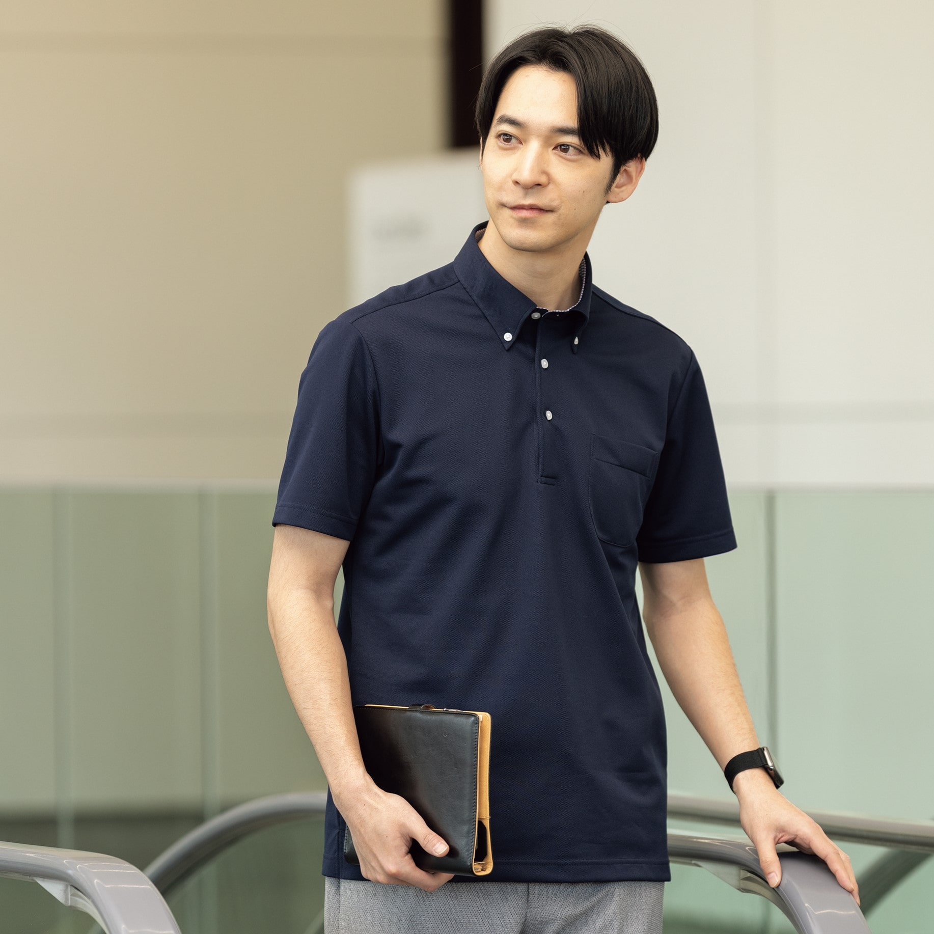 ビズポロ エアクール ボタンダウン ポロシャツ 紺 AOKI公式通販。
