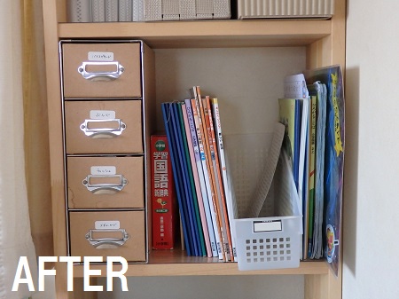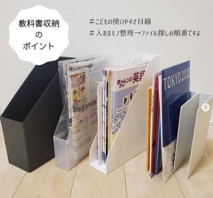 ファイルボックス+100均「ドアポケット用仕切り」で、高校生の教科書収納を分けやすく、取り出しやすく - 片づけ収納ドットコム。